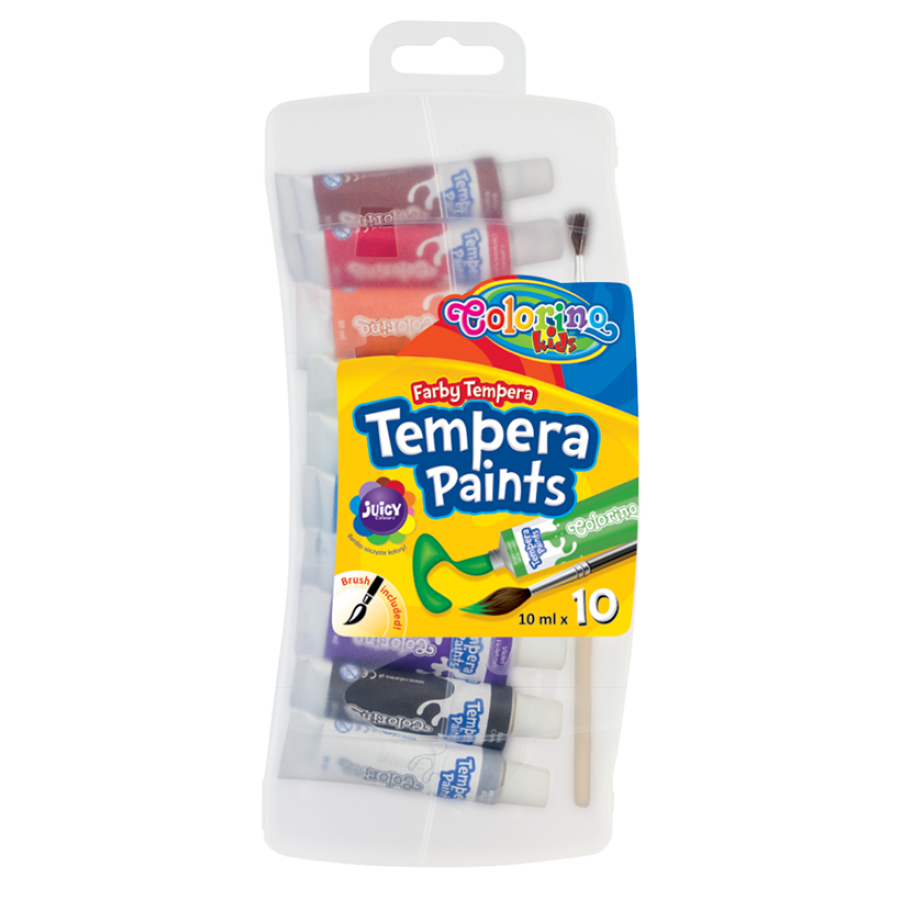 Farby Colorino Kids tempera w tubach o pojemności 10 ml z pędzelkiem, 10 kolorów.
