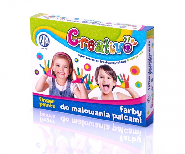Zestaw farb do malowania palcami, zawiera 4 kolory farb, po 50 ml każda. Farby nie wymagają rozcieńczania wodą. Przeznaczone do malowania na papierze palcami lub pędzlem oraz wykonywania odbitek dłoni i stóp. Zmywalna z większości tkanin i skóry. Farby zawierają substancję gorzką, która zapobiega spożyciu farby przez dzieci.