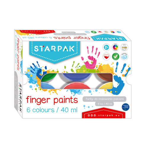 Zestaw wysokiej jakości farb do malowania palcami w 6 kolorach z kolekcji Starpak. Farby zamknięte są w wygodnych, przeźroczystych pudełeczkach. Posiadają intensywne kolory a mimo tego, są łatwo zmywalne dlatego , idealnie nadają się dla najmłodszych artystów. W zestawie znajduje się 6 róznokolorowych farb o pojemności 40ml. Zapoznaj się również z innymi produktami Starpak! Produkt przeznaczony dla dzieci w wieku: 2+. Wymiary opakowania(wys.x szer. x gł.) [cm]: 21x4,5x15.
