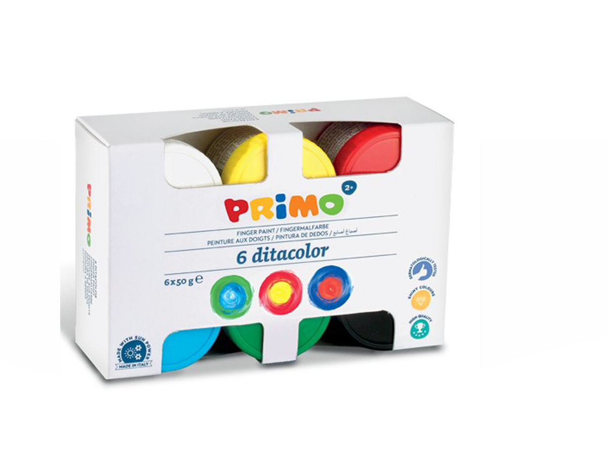 Zestaw farb do malowania palcami w 6 podstawowych kolorach, po 50 ml każdy. Farby zawierają bardzo dużo pigmentu, są gęste przez co bardzo dobrze kryją malowaną powierzchnię. Żywe, intensywne kolory zachęcają dzieci do pracy. Idealne do bezpośredniej aplikacji za pomocą rąk. Można także używać pędzla lub gąbki. Łatwo się spierają niemal z każdej powierzchni. Farby są zgodne z europejskimi i amerykańskimi normami bezpieczeństwa. Nie zawierają ftalanów, metali ciężkich i innych substancji toksycznych. Są bezpieczne dla dzieci.