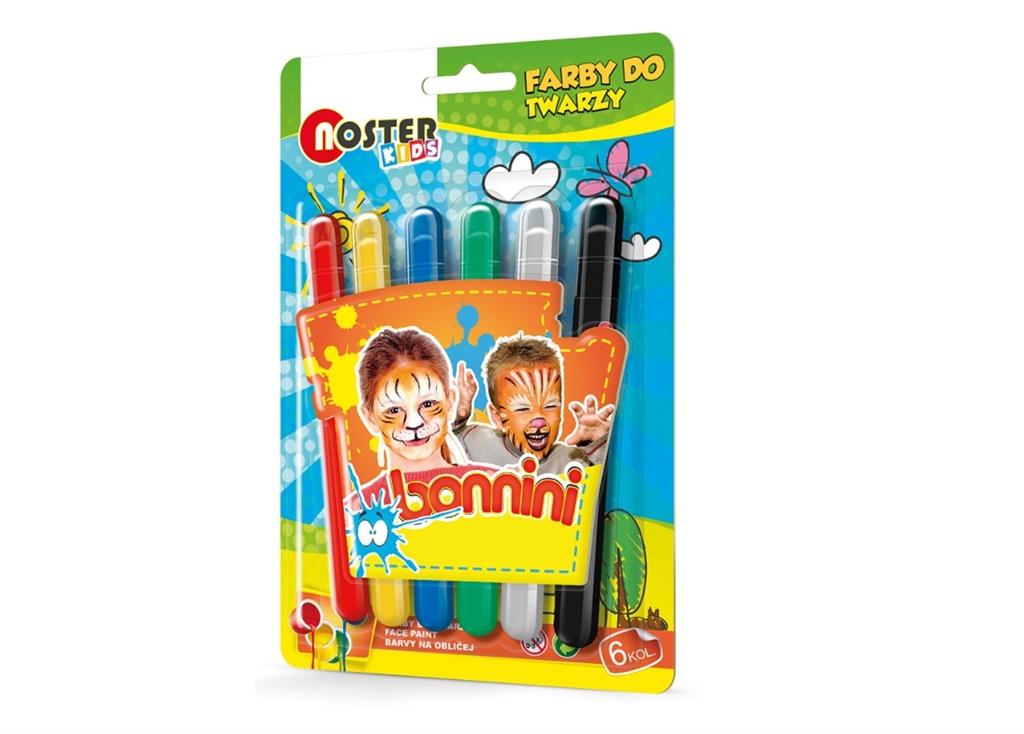 Wysokiej jakości farby do twarzy w formie mazaka, wykręcane 6 kolorów.