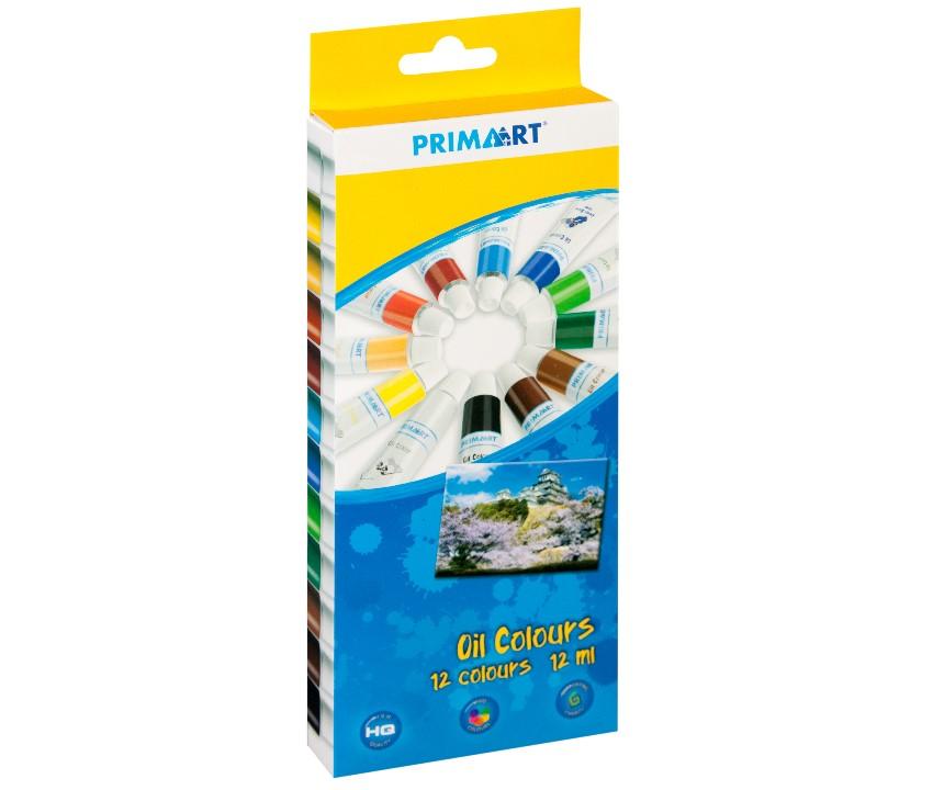 Farby olejne 12 kolorów w tubkach 12ml Prima Art. Farby z oleju lnianego i pigmentów. Długoschnące farby 2-12 dni. Żywe kolory odporne na blaknięcie. Duża trwałość. Duża swoboda w doborze i mieszaniu barw. Możliwość uzyskania efektu matu lub połysku, efektów półprzezroczystości i przenikania barw, oraz tworzeniu złożonych faktur.