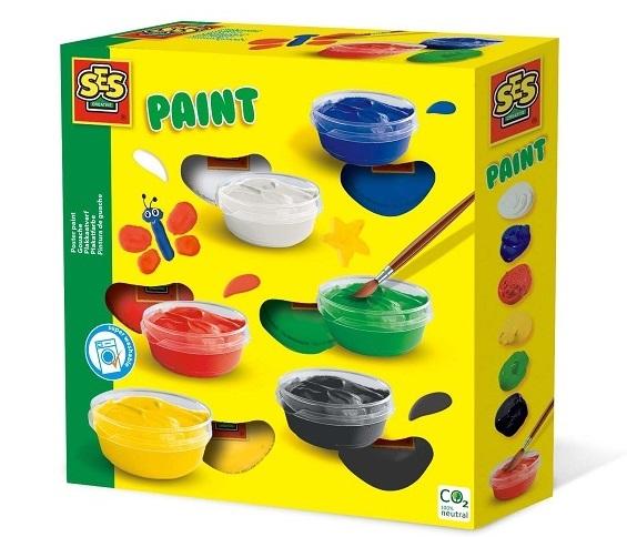 Farba plakatowa firmy SES znana jest z jakości, a przede wszystkim z jasnych kolorów, które zapewniają dobre, grube krycie. Farba plakatowa zawiera sześć kolorów: czerwony, żółty, niebieski, zielony, czarny i biały. Mieszając te kolory razem, można uzyskać o wiele więcej kolorów farb. Jakie kolory będziecie mieszać razem? Farbę plakatową firmy SES można łatwo zmyć z większości tekstyliów
