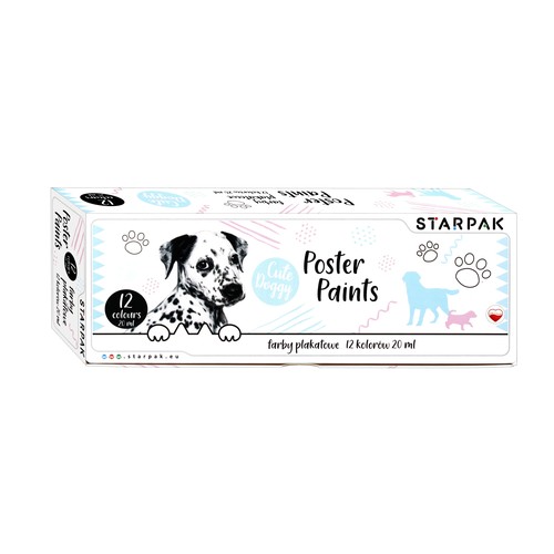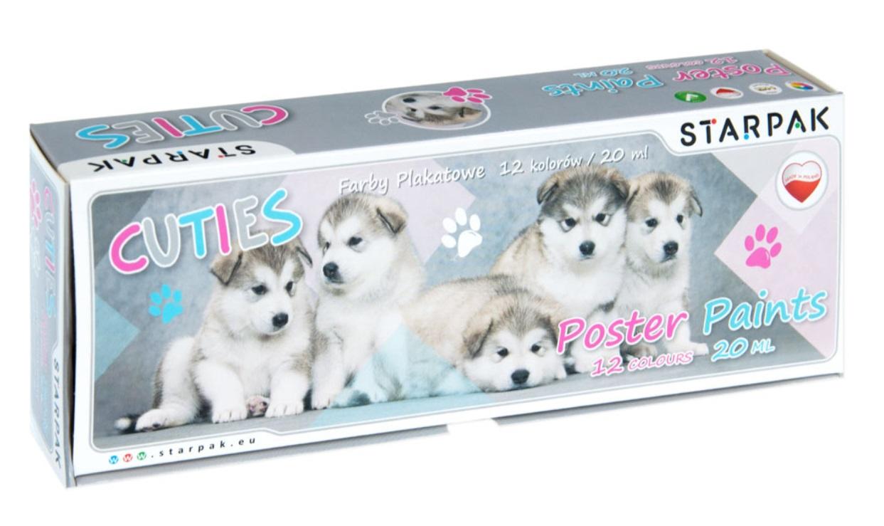 Farby plakatowe STARPAK to gęste farby wodne o kremowej konsystencji. Całkowicie bezpieczne dla dziecka dzięki użyciu bezpiecznych składników. Ten rodzaj farb charakteryzuje się intensywnymi i czystymi kolorami. Po wyschnięci kolory są matowe, ale nadal bardzo intensywne. Dodatkowo farby są kryjące, łatwo więc zamalować ewentualną pomyłkę lub niedociągnięcie. Farby plakatowe STARPAK są dostępne w zestawach po 12 kolorów. Każdy kolor w zamykanym pojemniczku o pojemności 20 ml. Można je bardzo długo przechowywać.