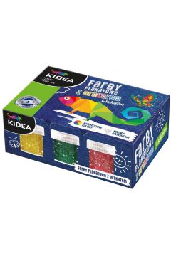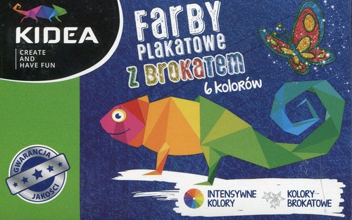 Farby plakatowe z brokatem 6 kolorów x 20ml. Duża ilość brokatu, intensywne, niespotykane barwy, dobrze kryjące, w zakęcanych pojemnikach, wydajne.