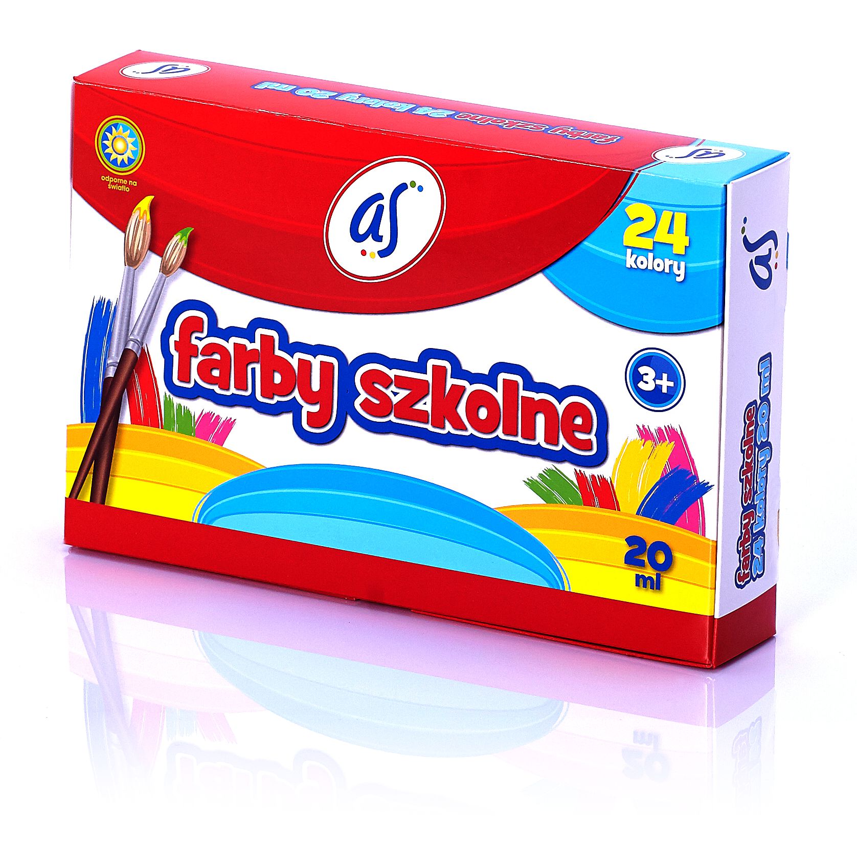 Farby szkolne o konsystencji półpłynnej. Konsystencja farb pozwala na wygodne i szybkie użycie, bez konieczności rozcieńcznia wodą (malowanie bezpośrednio z pojemnika). Farbami szkolnymi mozna malować na takich podłożch jak papier, karton i drewno.