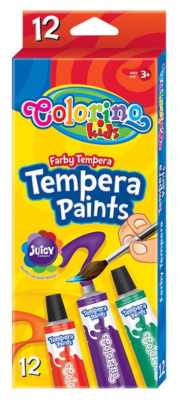 Farby Tempera w tubach z pędzelkiem 12 kolorów