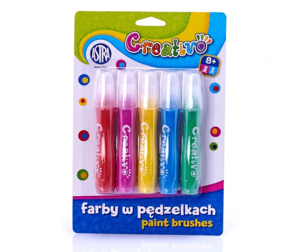 Farby w pędzelku ułatwiają malowanie i dozowanie farby. Wystarczy tylko delikatnie nacisnąć i można zacząć malować. Niepotrzebne są dodatkowe akcesoria. Doskonałe do malowania na papierze i kartonie.