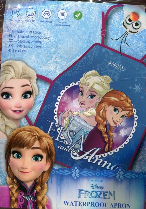 Fartuszek ochronny z kolekcji Starpak z licencją Frozen. Wykonany z impregnowanej wodoodpornej tkaniny, która ochroni ubrania przed zaplamieniem. Regulowany pasek zapinany na szyi, wyposażony został w plastikowy zatrzask, umożliwiający dopasowanie fartuszka do rozmiaru dziecka. Odpowiedniej długości paski umiejscowione po bokach fartuszka pozwalają na wygodne zawiązanie go na plecach. Specjalna szybkoschnąca tkanina, z której wykonane zostały fartuszki umożliwia łatwe usunięcie plam, dzięki czemu fartuszek sprawdzi się idealnie podczas zajęć plastycznych w przedszkolu, szkole i w domu.