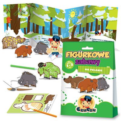 Na polanie to edukacyjna książeczka CzuCzu dla dzieci w wieku 1-3 lat. Znajdziecie w niej: 4 figurki do pokolorowania i złożenia, rozkładane tło, zagadki o zwierzętach oraz propozycje zabaw. Zabawa figurkami pozwala ćwiczyć małą motorykę, rozwijać wyobraźnię i kreatywność oraz zdobywać wiedzę o świecie. Doskonale sprawdzają się jako prezent dla najmłodszych, podczas podróży i codziennych czynności. Dzięki Figurkowym zabawom możecie urządzić wspaniały teatrzyk - samodzielnie ozdobić postaci, zaprojektować scenografię, a następnie podzielić się na role i odgrywać scenki. A kiedy wieczorem zrobi się ciemno, bawcie się w teatrzyk cieni - wystarczy przykleić bohaterów do patyczków. Figurki CzuCzu dają wam wiele możliwości. Jeśli chcecie ozdobić zwierzątkami pokój dziecięcy, za pomocą nitki powieście je w dowolnym miejscu. A jeżeli urządzacie przyjęcie, wykorzystajcie je jako bileciki dla gości.