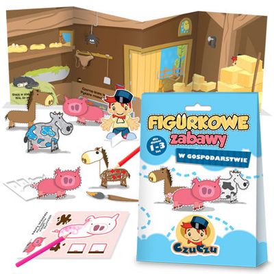 W gospodarstwie to edukacyjna książeczka CzuCzu dla dzieci w wieku 1-3 lat. Znajdziecie w niej: 4 figurki do pokolorowania i złożenia, rozkładane tło, zagadki o zwierzętach oraz propozycje zabaw. Zabawa figurkami pozwala ćwiczyć małą motorykę, rozwijać wyobraźnię i kreatywność oraz zdobywać wiedzę o świecie. Doskonale sprawdzają się jako prezent dla najmłodszych, podczas podróży i codziennych czynności. Dzięki Figurkowym zabawom możecie urządzić wspaniały teatrzyk - samodzielnie ozdobić postaci, zaprojektować scenografię, a następnie podzielić się na role i odgrywać scenki. A kiedy wieczorem zrobi się ciemno, bawcie się w teatrzyk cieni - wystarczy przykleić bohaterów do patyczków. Figurki CzuCzu dają wam wiele możliwości. Jeśli chcecie ozdobić zwierzątkami pokój dziecięcy, za pomocą nitki powieście je w dowolnym miejscu. A jeżeli urządzacie przyjęcie, wykorzystajcie je jako bileciki dla gości.