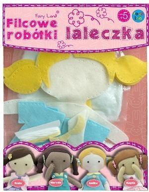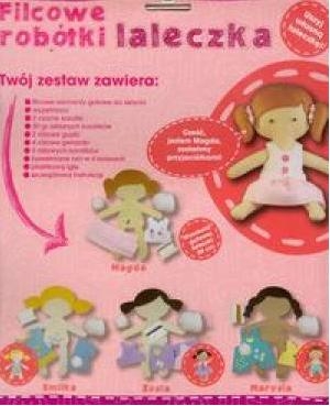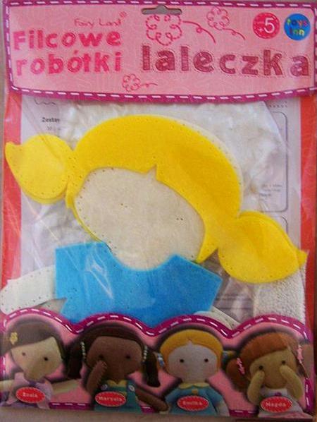 Uszyj własną laleczkę! Wysokość gotowej laleczki - 29cm.Zestaw zawiera: filcowe elementy gotowe do zszycia wypełniacz 2 czarne koraliki 30 g szklanych koralików 1 guzik w kształcie kwiatka 1 kokardkę bawełniane nici w 4 kolorach plastikową igłę szczegółową instrukcję.