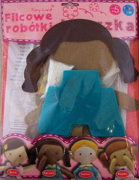 Uszyj własną laleczkę! Wysokość gotowej laleczki - 29cm.Zestaw zawiera: filcowe elementy gotowe do zszycia wypełniacz 2 czarne koraliki 30 g szklanych koralików 1 guzik w kształcie kwiatka 1 kokardkę bawełniane nici w 4 kolorach plastikową igłę szczegółową instrukcję.