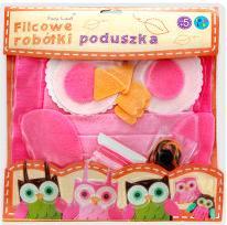 Zestaw kreatywny dla dzieci powyżej 5 lat. Zawiera filcowe elementy gotowe do zszycia oraz niezbędne akcesoria za pomocą których własnoręczynie uszyjesz poduszkę w kształcie sowy.