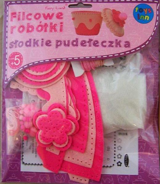 Uszyj własne pudełeczka! Zestaw zawiera: elementy z filcu gotowe do zszycia pompony różnej wielkości bawełniane nici w 4 kolorach żyłkę wędkarską wypełniacz plastikową igłę szczegółową instrukcję.