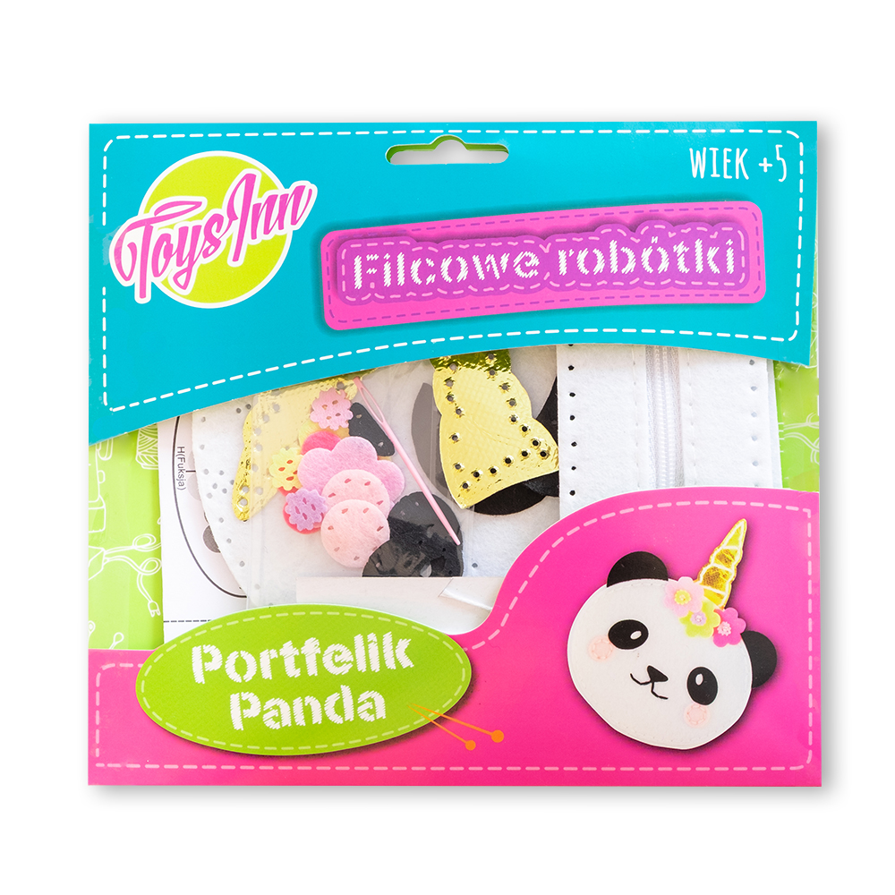 Zestaw filcowy Panda pozwala na samodzielne uszycie własnego, filcowego portfelika o wymiarach 12x10x5 cm. Zestaw rozwija motorykę dziecka, poprzez prace ręczne, a także uczy dokładności i cierpliwości. W skład zestawu wchodzą: filcowe elementy gotowe do zszycia, plastykowa igła, bawełniane nici, elementy dekoracyjne oraz instrukcja. Zestaw jest odpowiedni dla dzieci w wieku 5+