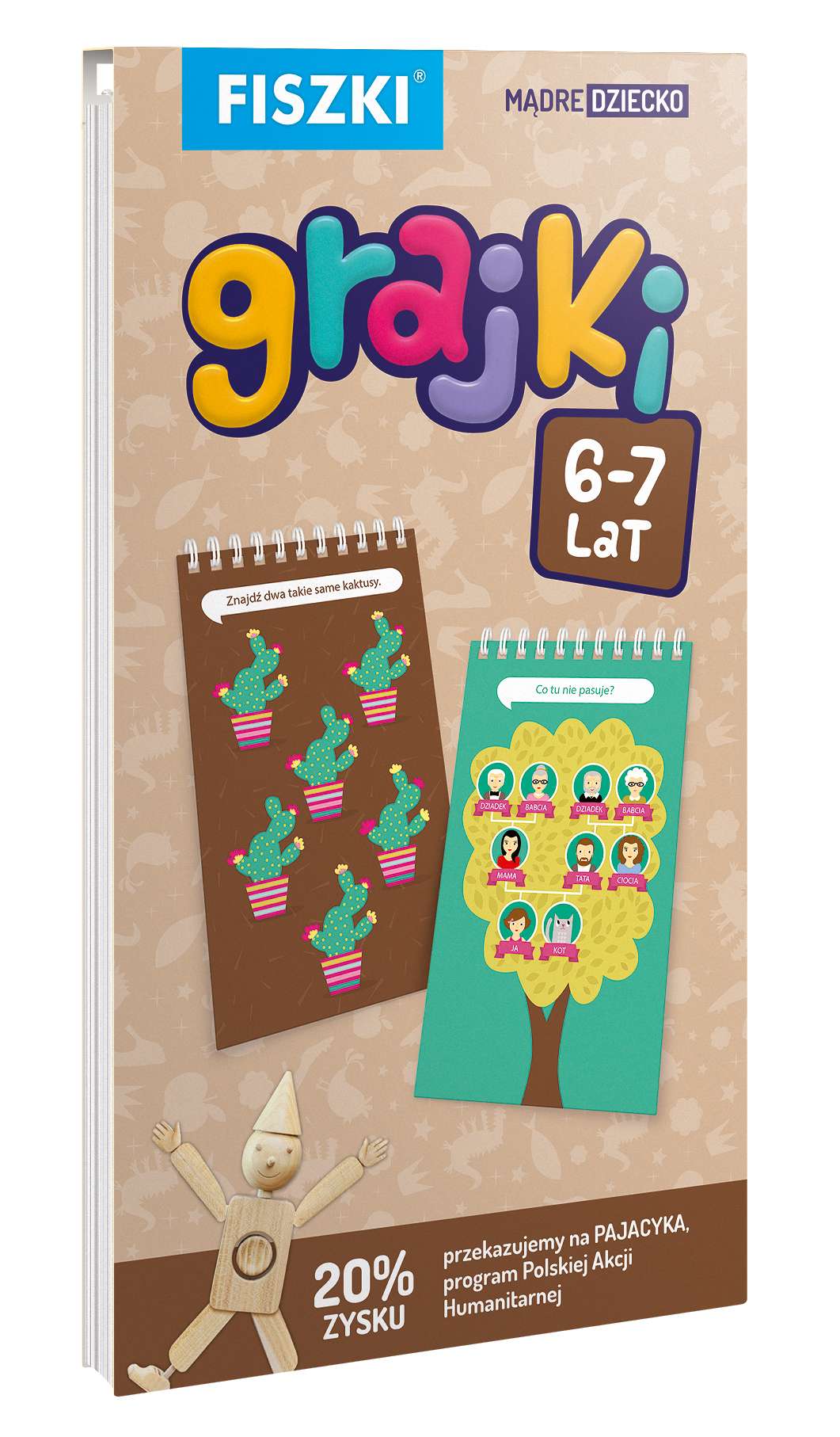 GRAJKI to książeczki z zabawami edukacyjnymi dla dzieci wieku przedszkolnym (2-3, 3-4, 4-5, 5-6 oraz 6-7 lat). GRAJKI 6-7 lat zawierają 160 różnorodnych zabaw ćwiczących spostrzegawczość, koncentrację, umiejętność logicznego myślenia, rozwijających wiedzę o świecie i poszerzających słownictwo.