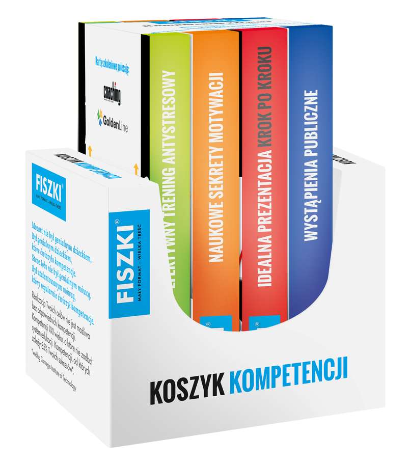 Koszyk kompetencji 1 zawiera : FISZKI Naukowe sekrety motywacji w 4 dni +FISZKI Szkoła projektowania prezentacji w 4 dni+ FISZKI - Wystąpienia publiczne w 4 dni+ FISZKI Efektywny trening antystresowy w 4 dni