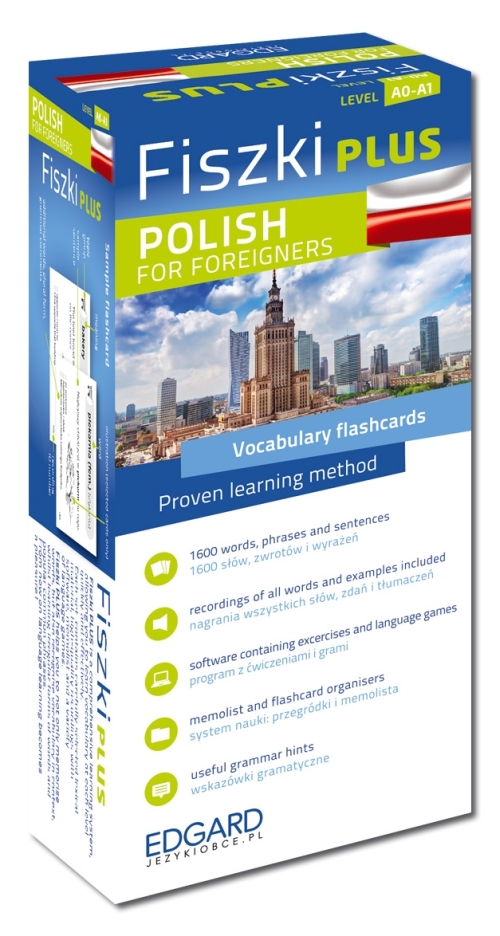 Fiszki PLUS Polish for Foreigners (A0-A1) is 600 flashcards packet and a part of a comprehensive learning system, allowing you to learn polish vocabulary at each level quickly and effectively.