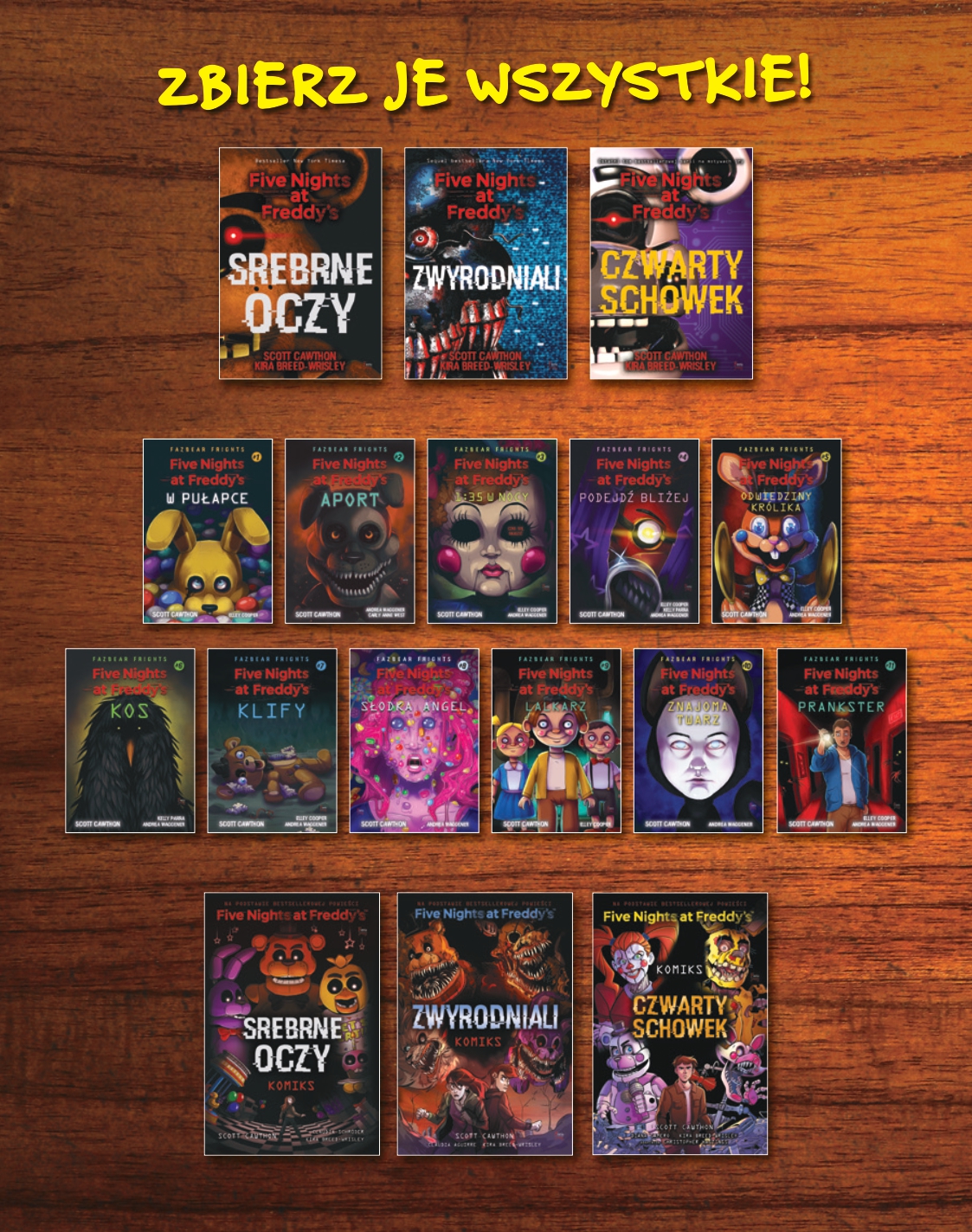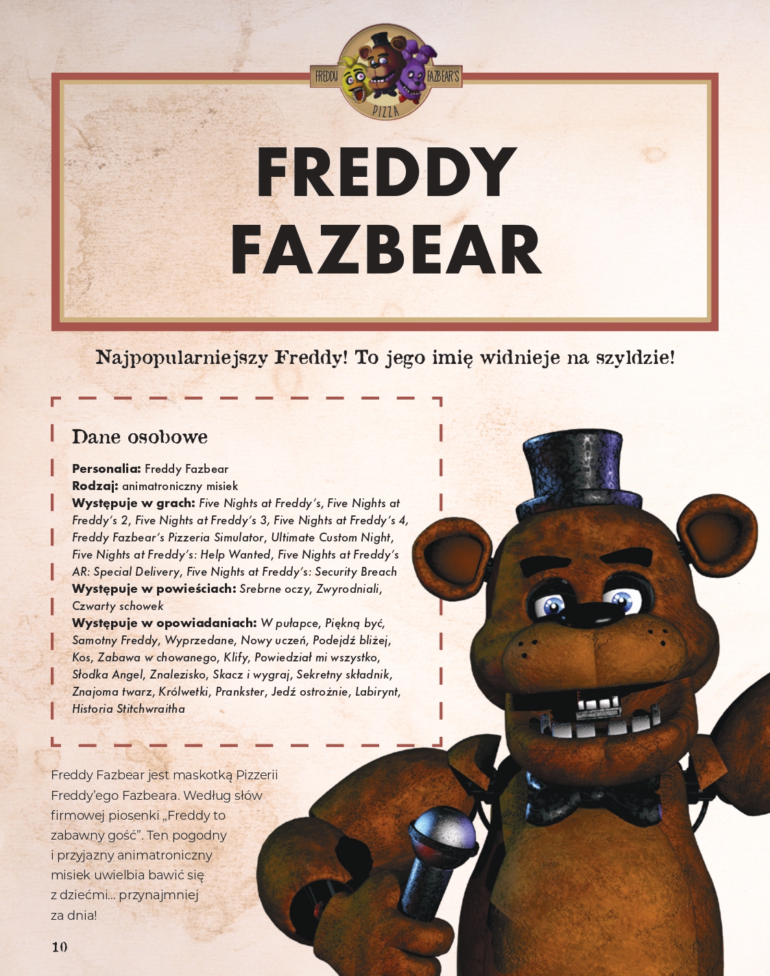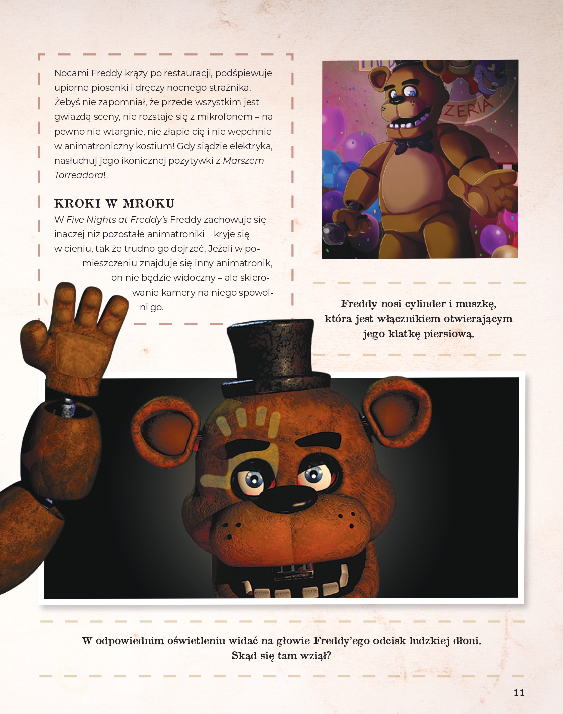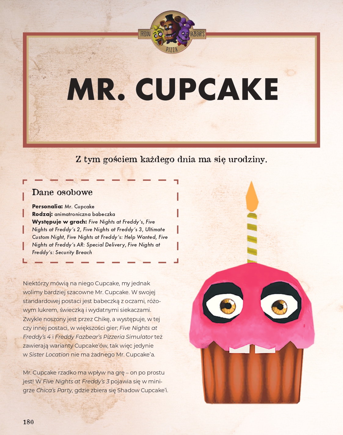 WSZYSTKIE POSTACIE Z ZATRWAŻAJĄCEGO UNIWERSUM FIVE NIGHTS AT FREDDYS W OFICJALNEJ ENCYKLOPEDII! Obszerne zestawienie postaci z Five Nights at Freddys zawarte w tej epickiej encyklopedii z pewnością wzbogaci kolekcję każdego prawdziwego fana. Znajdziesz tu wyjątkowe, niezwykle szczegółowe opisy bohaterów gier, powieści i opowiadań! Poszerz swoją wiedzę o najmniej znanych i najdziwaczniejszych morderczych animatronikach, a będziesz mógł tytułować się prawdziwym megafanem Five Nights at Freddys. W świecie FNAF zawsze jest coś więcej do odkrycia! Powyższy opis pochodzi od wydawcy.