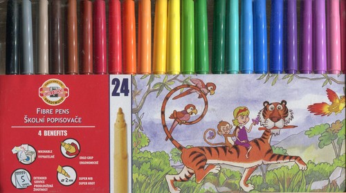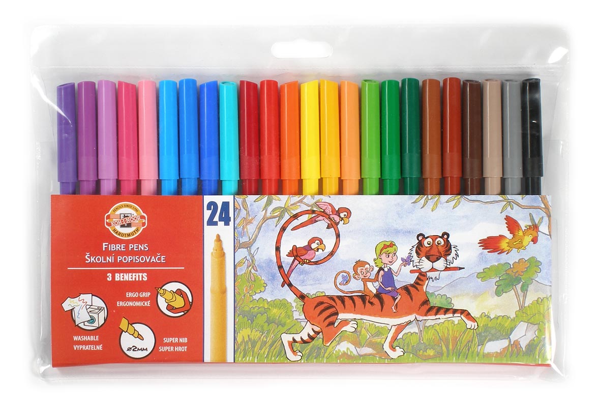Szkolne flamastry zmywalne z ergonomicznym trójbocznym uchwytem. W przypadku pobrudzenia ubrania lub rąk (czy też innych przedmiotów) łatwe w usunięciu za pomocą wody z mydłem (pranie w temperaturze 40 st. C). Bezpieczne dla użytkownika, produkowane zgodnie z europejskimi normami bezpieczeństwa. Mają gwarantowaną przydatność do użycia aż do 4 lat. Komplet 24 kolory w kartoniku.
