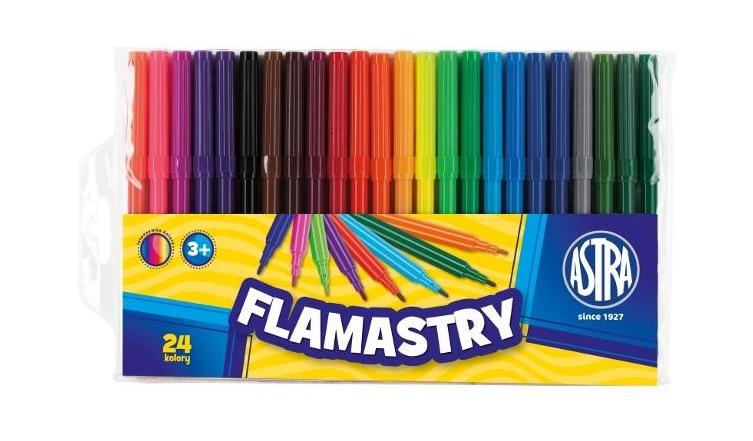 Wysokiej jakości flamastry produkowane są według najlepszych norm jakościowych. Dobra jakość tuszu oraz żywe kolory zapewnią dzieciom długie godziny zabawy. Flamastry ASTRY posiadają bezpieczną wentylowaną skuwkę.
