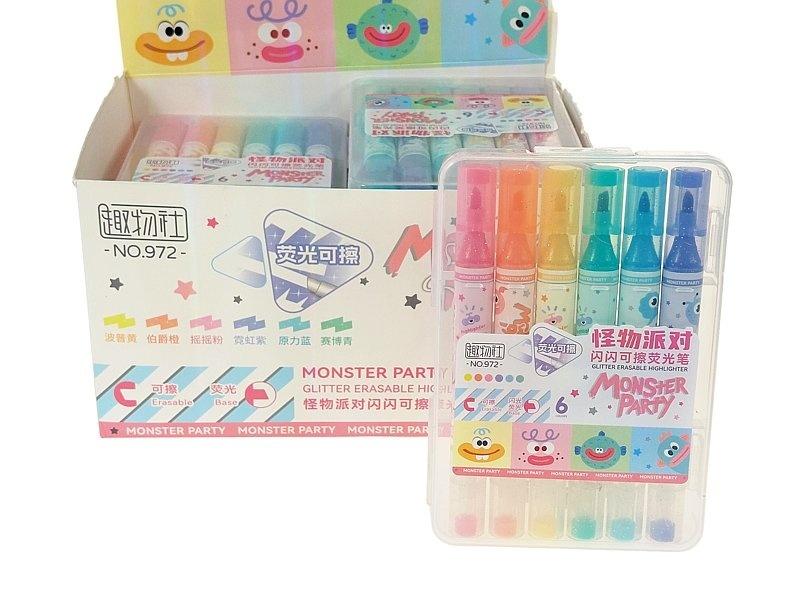 Zestaw 6 flamastrów dwustronnych (zakreślacz ze zmazywaniem) 15,5x10,5cm, PVC