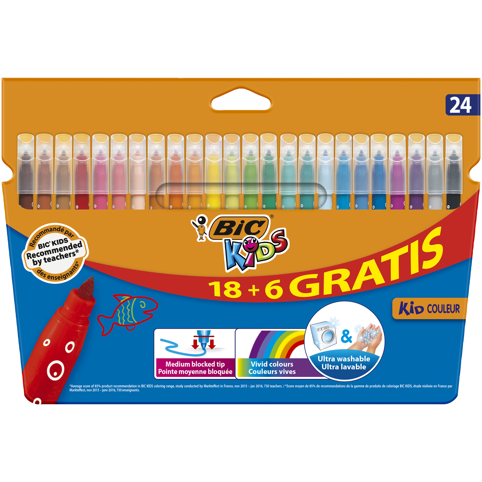 Kolorowe flamastry zmywalne: łatwe do usuwania ze skóry i tkanin za pomocą wody i mydła. Średnia blokowana końcówka. Żywe kolory. Wentylowana skuwka. UWAGA! Produkt przeznaczony dla dzieci powyżej 3-go roku życia. Małe elementy.