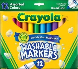 Przybory do rysowania z serii CRAYOLA CORE - przeznaczone dla dzieci w wieku 3+.Zestaw zawiera 12 flamastrów . Ślady po flamastrach są łatwo zmywalne i łatwo spieralne.