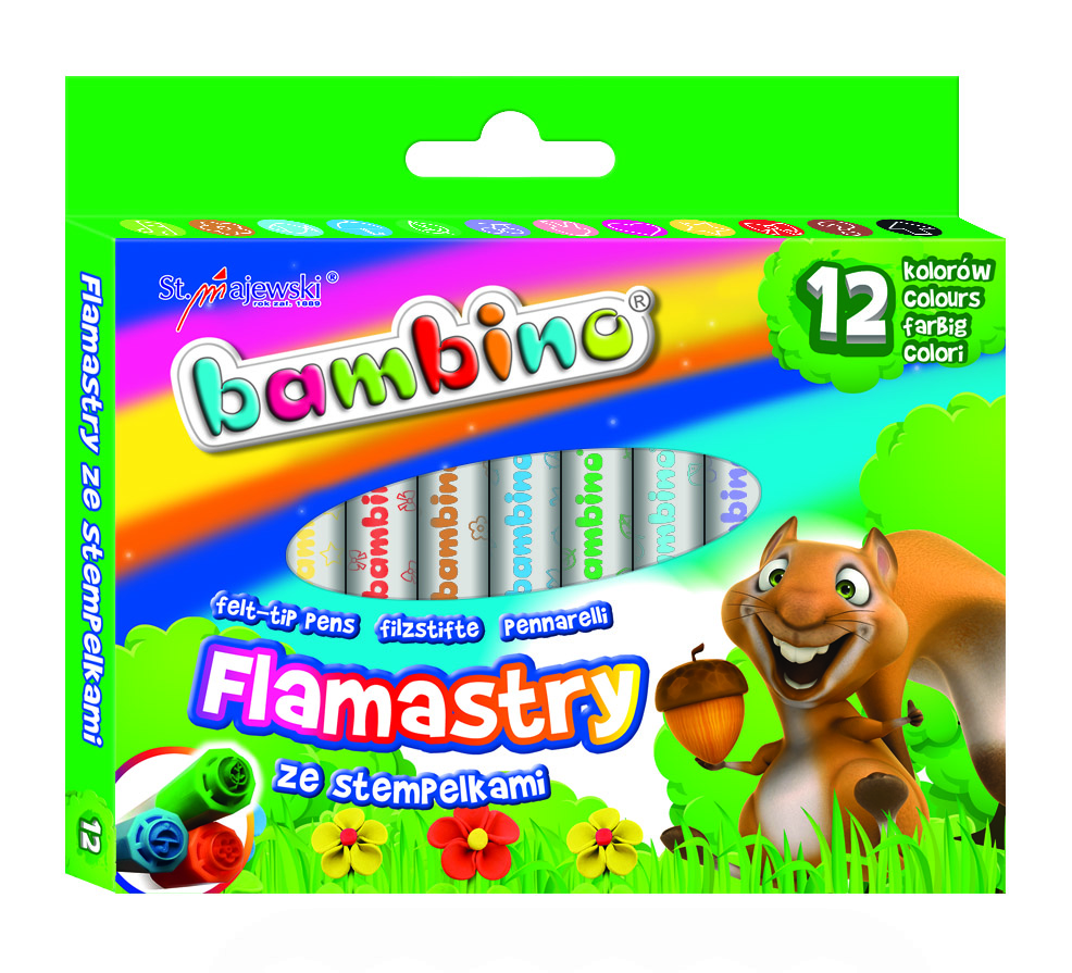 Flamastry ze stempelkami 12 kolorów.