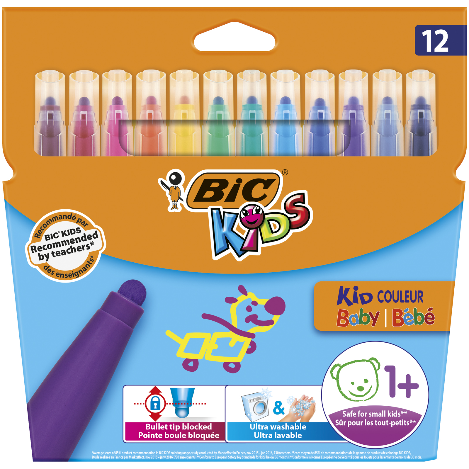 Flamastry przeznaczone dla najmłodszych dzieci, już od pierwszego roku życia. Okrągła, blokowana końcówka, brak możliwości wciśnięcia do środka. Szeroka gama kolorów. Zmywalny tusz na bazie wody, łatwo spieralny z tkanin. Łatwo zmywalny z rąk, ciała. Miękka, wentylowana skuwka. Nietoksyczne. Produkt bezpieczny dla dzieci.