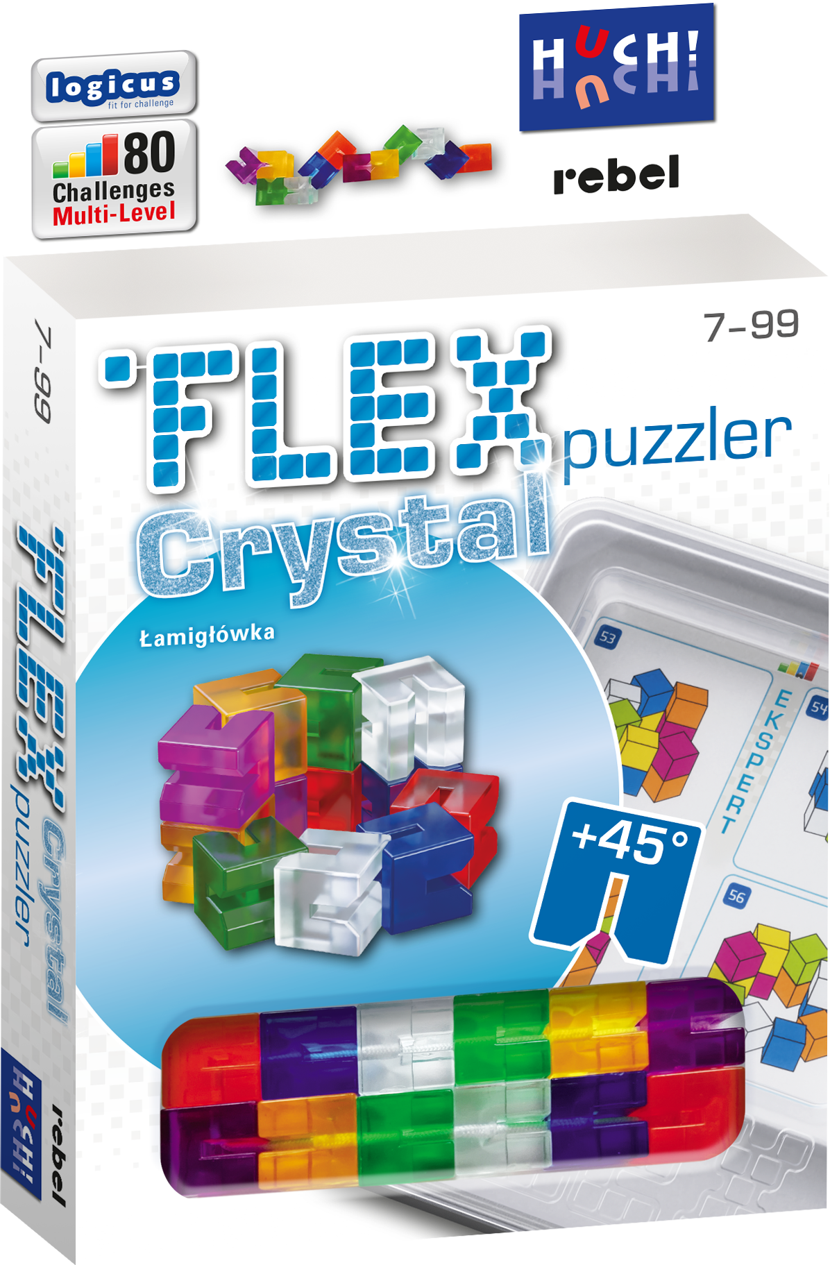 Wypróbuj swoją wyobraźnię przestrzenną i sprawdź, jak dobrze radzisz sobie z rozwiązywaniem abstrakcyjnych łamigłówek! Flex Puzzler: Crystal to specjalny plastikowy mechanizm, który możesz wygiąć w dowolny sposób pod kątem 45° i 90°. Tylko jak znaleźć właściwy układ, wskazany na karcie zadania?