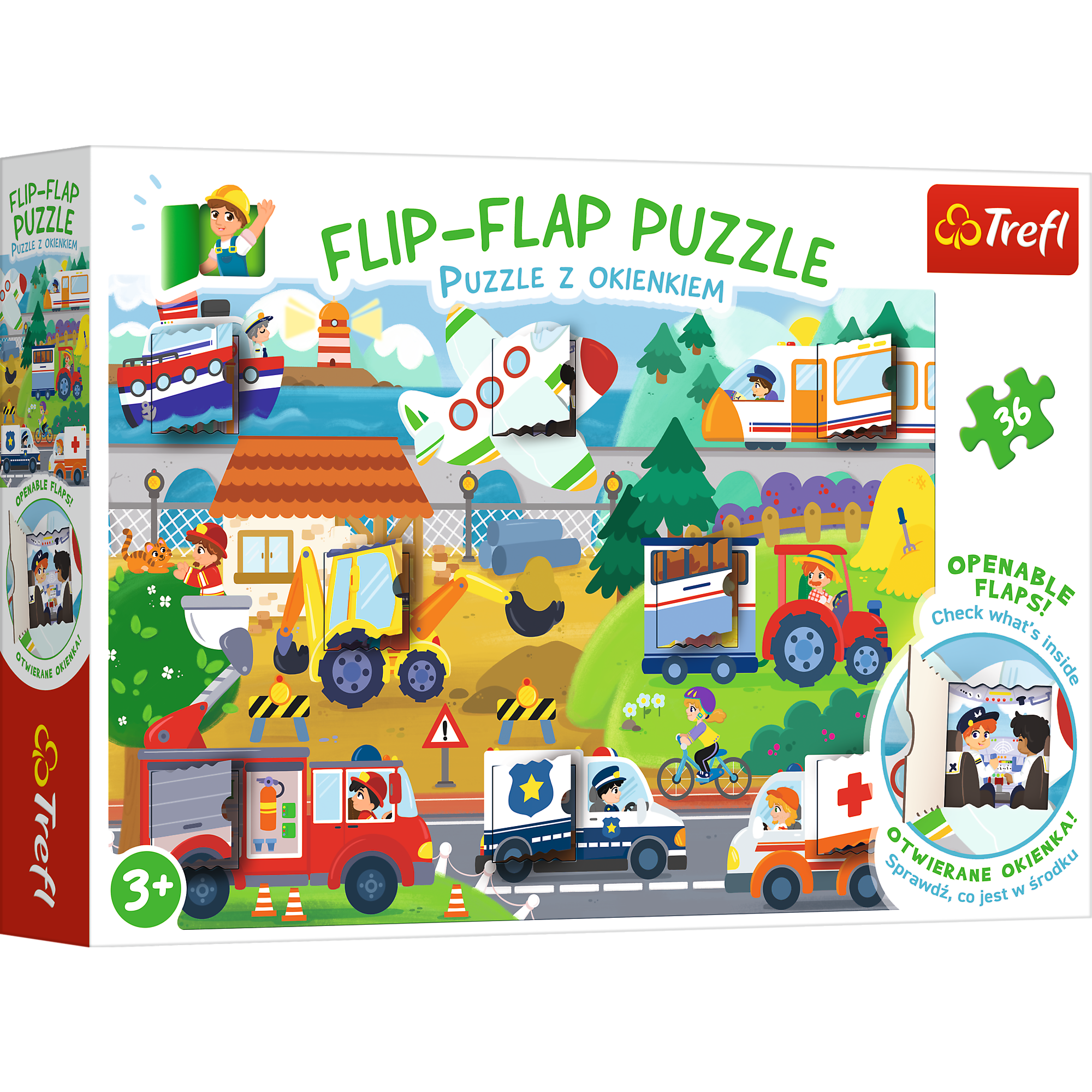 Flip-Flap Puzzle z okienkiem 36 Pojazdy