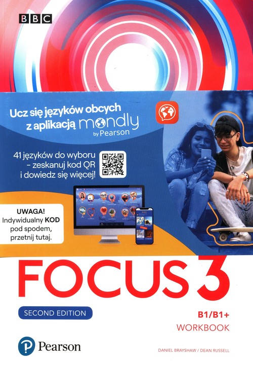 Komplet Focus Second Edition 3 podręcznik + zeszyt ćwiczeń skupia się na rozwijaniu umiejętności językowych, prawidłowej wymowie i akcencie. Celem publikacji jest realizacja założeń podstawy programowej i pomoc uczniom w nauce języka angielskiego. Zestaw uzupełnia kod dostępowy do platformy MondlyWORKS. Platforma MondlyWORKS: daje pełny dostęp premium do 41 języków za pośrednictwem aplikacji Mondly by Pearson, wykorzystuje najnowocześniejsze technologie, takie jak chatboty, rozpoznawanie mowy i AI, udostępnia dodatkowe ćwiczenia w trybie "Hands free", symulującym prawdziwe rozmowy z nativespeakerami, które rozwijają u uczniów umiejętność mówienia w obcym języku, dzięki elementom grywalizacji i dostępu do ogólnych rankingów, daje uczniom możliwość konkurowania ze znajomymi i podejmowania wyzwań, daje dostęp do modułów z ponad 40 tematami, które wzbogacą lekcje przeprowadzane w klasie, jest dostępna na wszystkich urządzeniach: komputerach, telefonach i tabletach oraz łatwo integruje się z istniejącym programem nauczania, wspiera uczniów potrzebujących dodatkowych zadań, które nie wymagają wcześniejszego przygotowania, a ich wyniki pojawiają się automatycznie w aplikacji, w prosty sposób monitoruje aktywność i postępy uczniów. Podręcznik Focus Second Edition 3 to kurs do nauki języka angielskiego dla licealistów i uczniów techników. Seria Focus Second Edition wyróżnia się różnorodnymi materiałami dydaktycznymi - również narzędziami do nauki online. Zeszyt ćwiczeń Focus Second Edition 3 uzupełnia materiał z podręcznika z tej samej serii. Intuicyjna struktura ćwiczeniówki, różnorodne ćwiczenia na gramatykę i słownictwo oraz dodatkowe komponenty umożliwiają efektywną naukę języka angielskiego. Uczniowie znajdą w ćwiczeniówce Focus Second Edition 3 arkusze pracy z filmami BBC, które wspierają osłuchanie się z językiem oraz kod dostępu do interaktywnego zeszytu ćwiczeń, który automatycznie sprawdza zamknięte zadania, udostępnia bazę nagrań audio i wideo. Ponadto uczniowie mogą skorzystać z dodatkowych ćwiczeń z zakresu gramatyki i słownictwa.