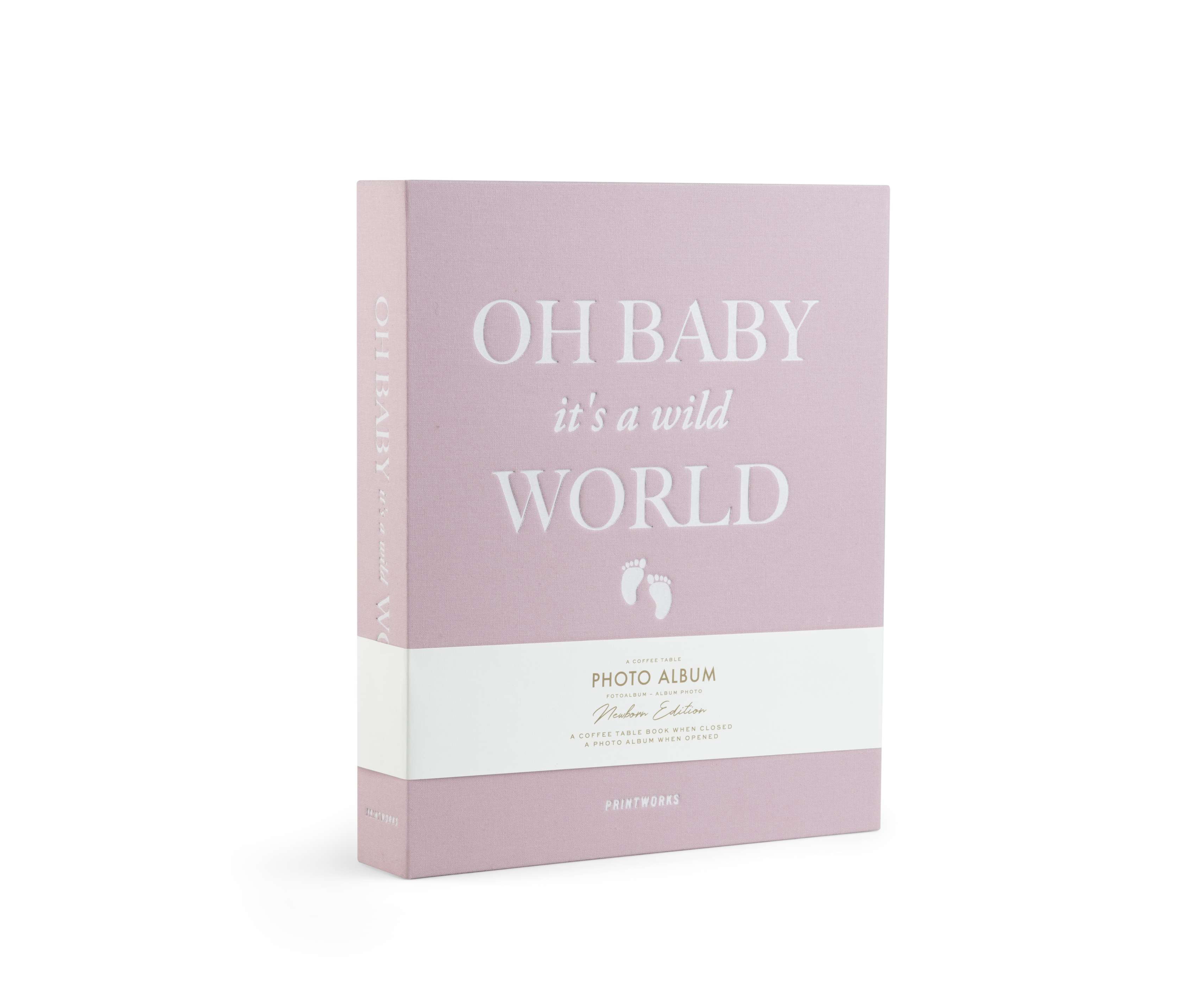 Wyjątkowy Fotoalbum ,,Oh Baby it's a Wild World"" w kolorze różowym został zaprojektowany specjalnie z myślą o zdjęciach Twojego dziecka. Stanow stylowy detal na stoliku kawowym lub półce na książki. Zdjęcia dzieci powinny być oglądane, a nie ukrywane w szufladzie!