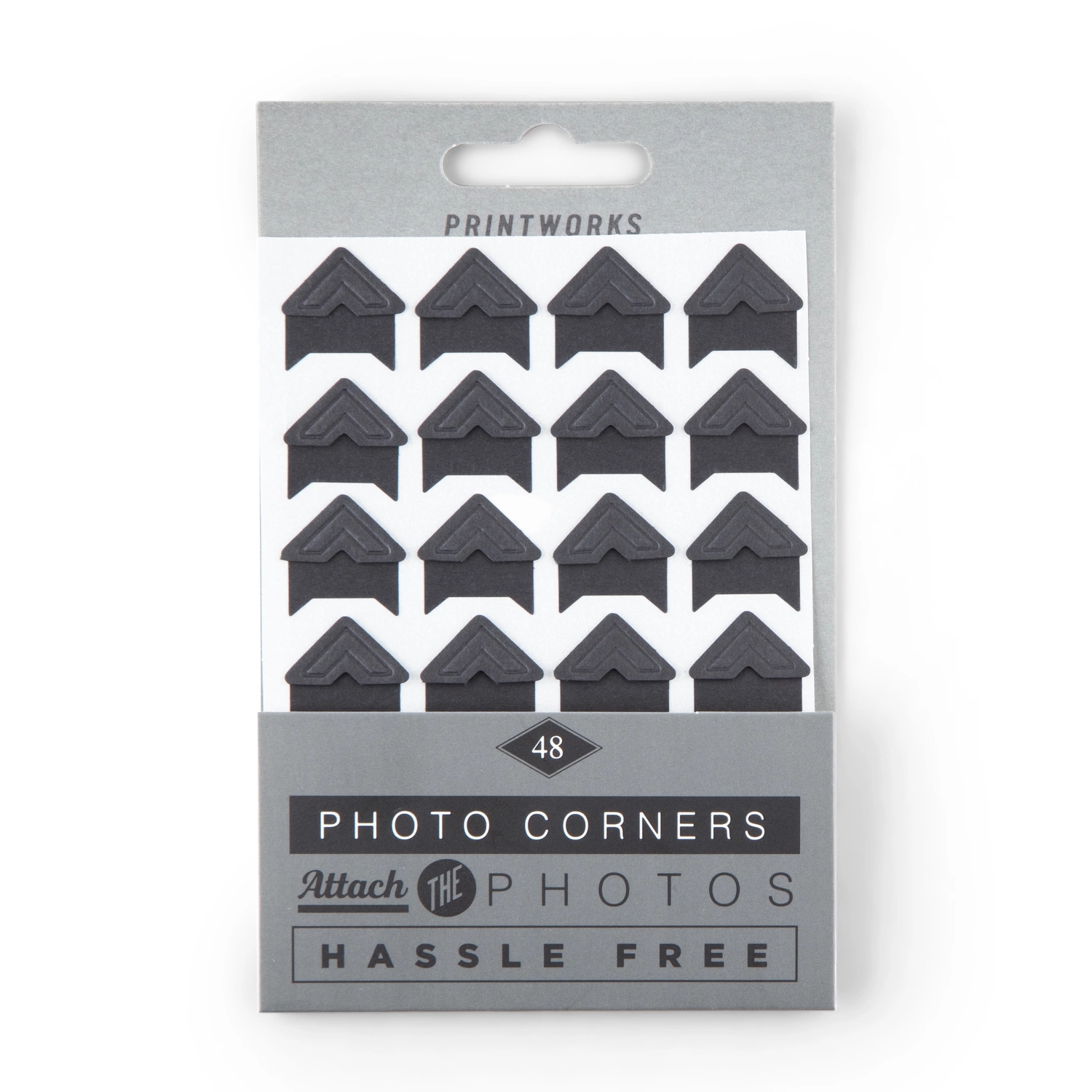Dołączaj swoje zdjęcia bezproblemowo dzięki czarnym, matowym, przyklejanym narożnikom.