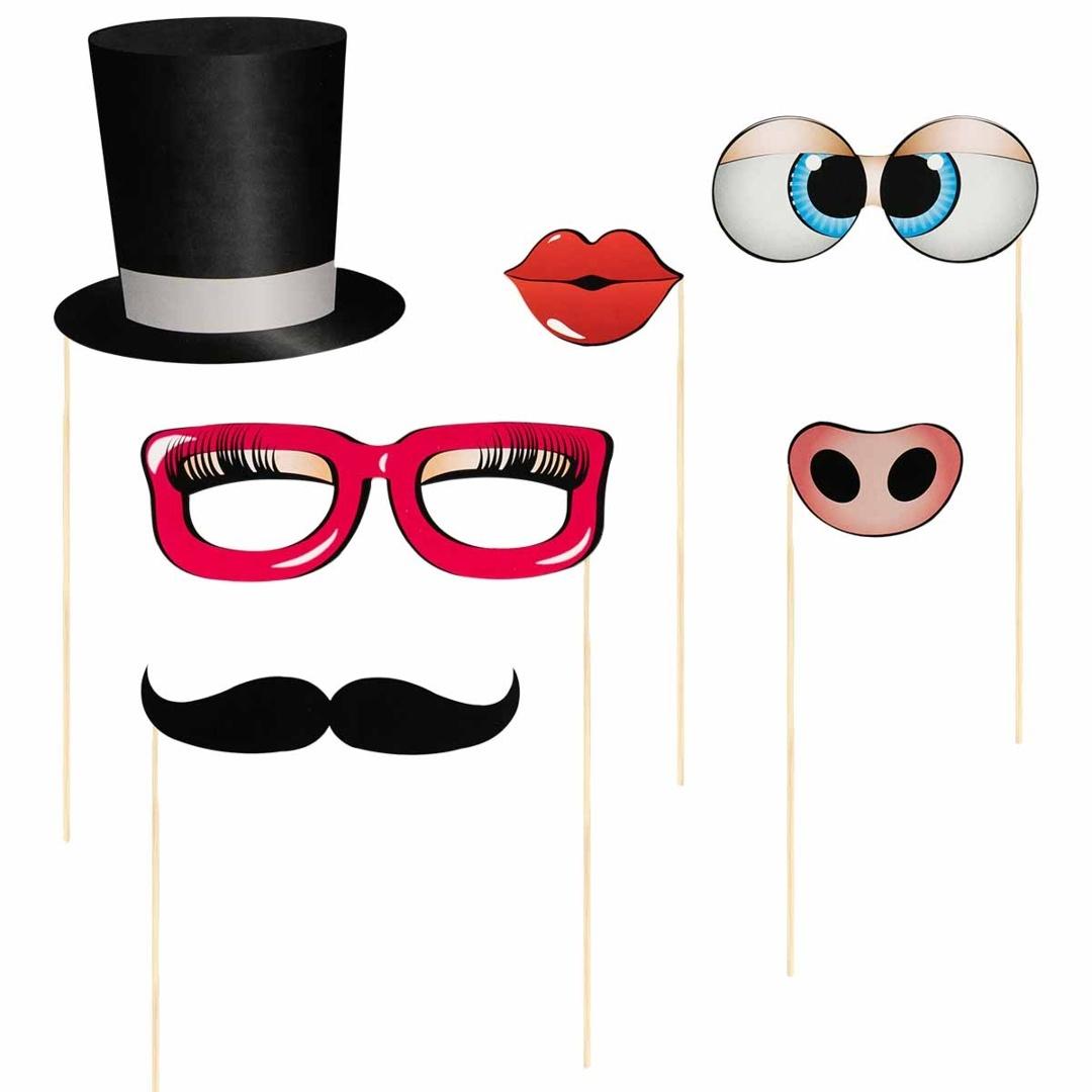 Zestaw akcesoriów do zdjęć do samodzielnego wykonania. W zestawie 6 patyczków, 6 naklejek i 6 papierowych elementów