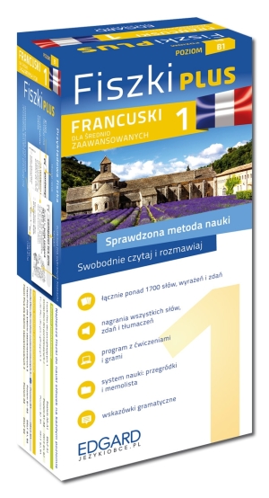 Francuski Fiszki PLUS dla średnio zaawansowanych 1 (B1) to pakiet 600 fiszek będący częścią rozbudowanego systemu nauki, dzięki któremu szybko i skutecznie nauczysz się słownictwa na każdym poziomie zaawansowania. Każdy zestaw Fiszek PLUS to starannie przygotowany materiał, wysokiej jakości nagrania wymowy wraz z programem komputerowym, memolistą i grami językowymi.