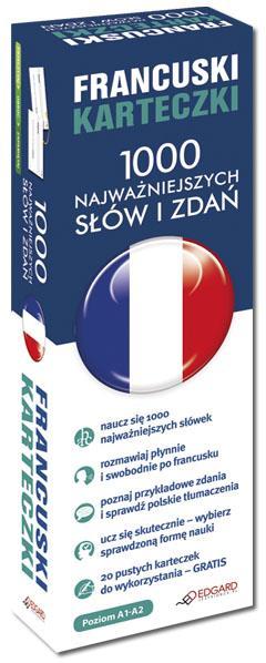 1000 najważniejszych słów wraz z 1000 przykładowych zdań to wyjątkowy zestaw tysiąca ponumerowanych, usztywnionych kartoników do nauki francuskiego. Nauka z kursem pozwala szybko i skutecznie opanować najczęściej używane w języku francuskim słówka. Opanowanie tego unikalnego zestawu umożliwia swobodną komunikację na poziomie podstawowym oraz czytanie większości tekstów w języku francuskim.