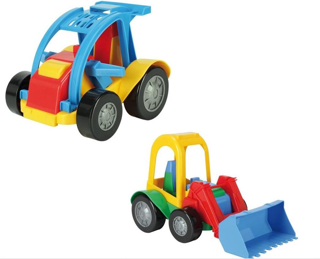Pojazdy charakteryzują się solidnym wykonaniem, lekkością konstrukcji oraz łatwością sterowania. Żywa kolorystyka rozwija u dziecka zdolności kojarzenia i rozpoznawania kolorów. Autka idealnie nadają się do zabawy zarówno w domu, jak i w piaskownicy.