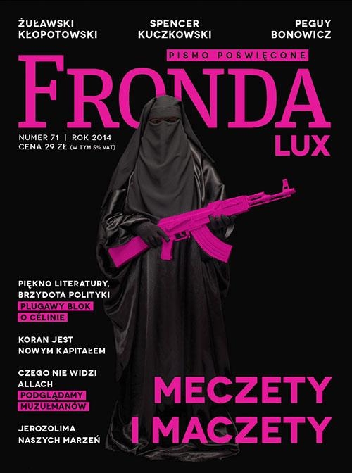 Fronda 71 - Meczety i maczetyMeczety i maczety nadchodzą. Przybywają z obfitym ładunkiem intelektualnym. Zastanawiasz się, czy islam jest zagrożeniem dla Europy i chrześcijaństwa? Chcesz wiedzieć jak wygląda gospodarka w imię Allacha? Intryguje Cię, ciekawi, przeraża świat pod znakiem półksiężyca? Zajrzyj do najnowszej Frondy LUX!