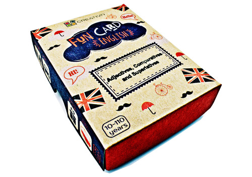 Z tym zestawem Twoi uczniowie do perfekcji opanują umiejętność tworzenia zdań używając przymiotników w stopniu wyższym i najwyższym. Zestaw składa się z 50 kart z 50 przymiotnikami, 150 obrazkami oraz 150 zdaniami na odwrocie kart.