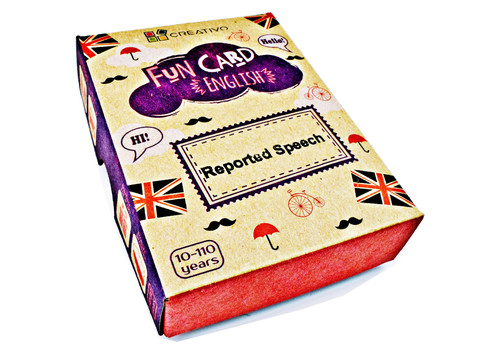 Czy przyswojenie mowy zależnej wymaga żmudnych ćwiczeń? Niekoniecznie, dzięki zestawowi Fun Card English Reported Speech można opanować zasady przekształcania zdań w bardzo przyjemny i łatwy sposób. Podczas ćwiczeń uczniowie muszą przekształcać zdania w oparciu o obrazki. Zestaw składa się z 50 kart obrazkowych prezentujących użycie mowy zależnej w różnych czasach w zdaniach oznajmujących, pytających oraz przeczących.