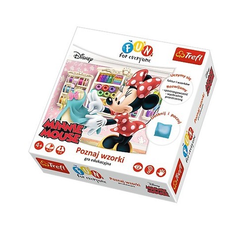 Poznaj wzorki – to gra planszowa oraz zestaw zabaw, dzięki którym poznamy różne faktury i wzory. Zapraszamy do salonu krawieckiego Minnie. Kto pierwszy zdobędzie odpowiedni materiał i uszyje piękną poduszkę, wygrywa!