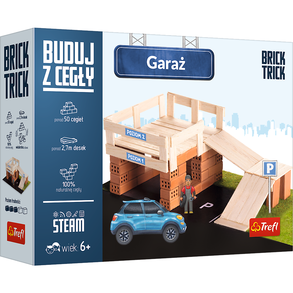 Wybuduj garaż dwupoziomowy, wykorzystując prawdziwe cegły, drewno i elementy dekoracyjne.