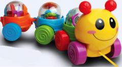 Gąsienica na sznureczku do prowadzenia przez Maluszka. Pociągnij gąsienicę Gosię za sznureczek i obserwuj jak kuleczki zaczną się wesoło obracać wydając grzechoczące dźwięki. Gąsienica składa się z osobnych elementów, które w łatwy sposób można rozłączyć i połączyć za pomocą plastikowych zaczepów. Przekręcając czułki gąsienicy Gosi usłyszymy zabawny terkoczący dźwięk. Dodatkową atrakcją są kuleczki, które mogą służyć jako odrębna zabawka.