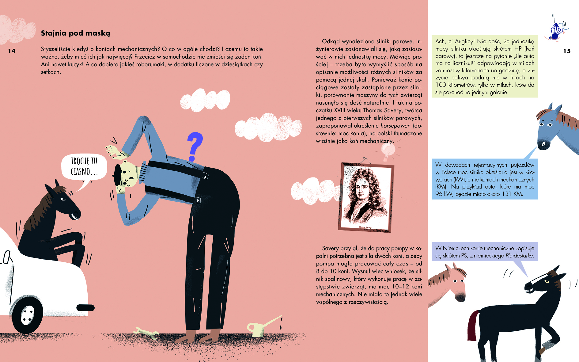 Czy na masce samochodu da się usmażyć jajecznicę? Dlaczego moc silnika podajemy w koniach mechanicznych, a nie na przykład jamnikach? Gdzie można dostać mandat za jazdę czarnym autem w niedzielę, a gdzie trzeba ustąpić pierwszeństwa strusiom? I w końcu jak to się w ogóle dzieje, że samochód jeździ?!