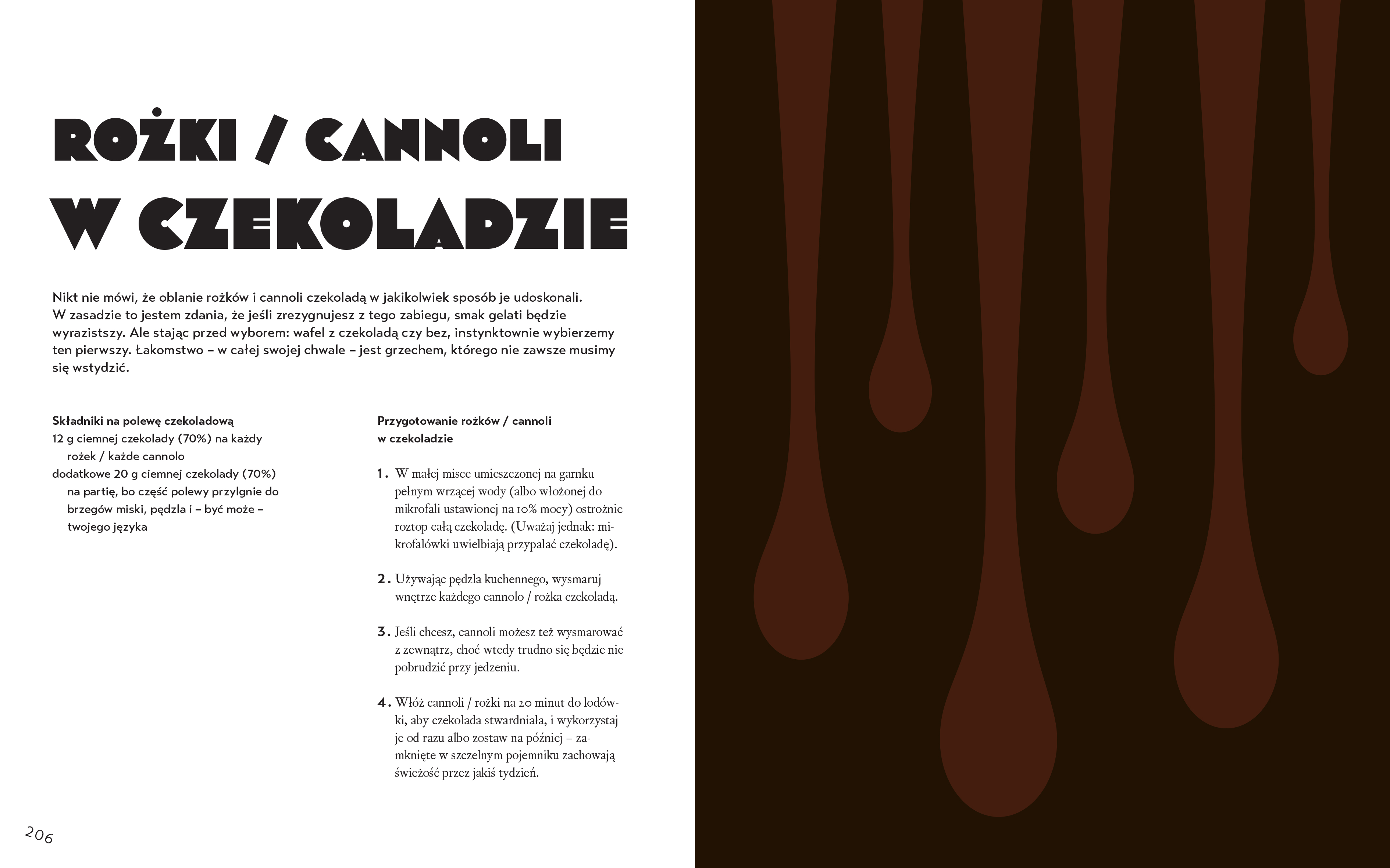 Oprócz przepisów na lody, o smakach zarówno klasycznych, jak i wyszukanych, w książce znajdziesz także receptury na domowe rożki, profiterolki, sgroppino, affogato, trufle i wybitny sos czekoladowy.