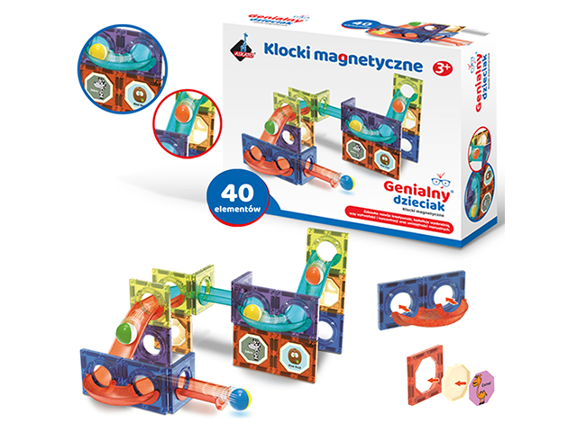 Zestaw łączy w sobie zalety klocków magnetycznych i toru kulkowego.