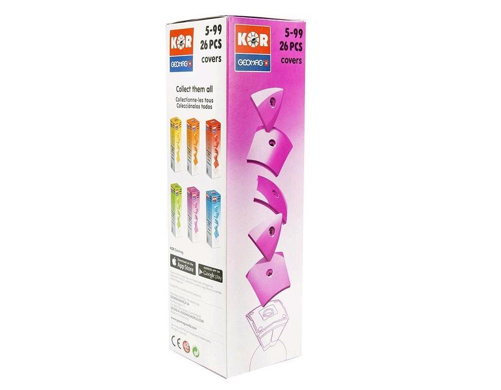 KOR Geomag - zupełnie nowa linia szwajcarskich klocków magnetycznych. Innowacyjny system konstrukcji pozwala na budowanie kosmicznych bohaterów oraz ich przeciwników. Postacie różnią się od siebie kolorem, maskami oraz rodzajami broni.
